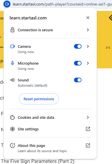2. Click Allow to grant permissions to your browser to use your camera and microphone.